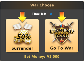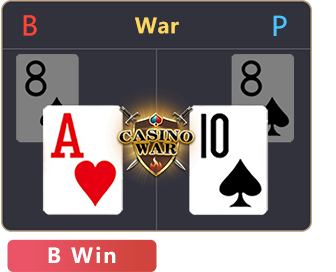 (2) Going To War:will additionally deduct the same amount of bet as the original bet. If the account balance is insufficient or other factors lead to the failure of entering the casino war, it will be regarded as surrender. - When the decision-making time is over, the dealer open the second card of the palyer and the banker respectively. If the points of the second card of the player is greater than or equal to the points of the second card of the banker, the player wins. The player gains the corresponding odds of lottery.