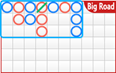 Definition: it appears that the banker is separated by player on the road of the good road(that is banker-player-2 or more banker) , this kind of combination should appear at least twice, the number of player could be random number, which is called “Road 9”.