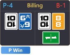 | 4+5+(-5)=+4 | 1+(-2)=(-1) | Player according to the negative number needs to draw card, after the draw, banker points still leading, banker wins. |