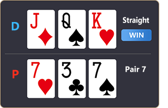 - ※Note: Player placed bet for any one of above card type, only consider win when the card type is meets